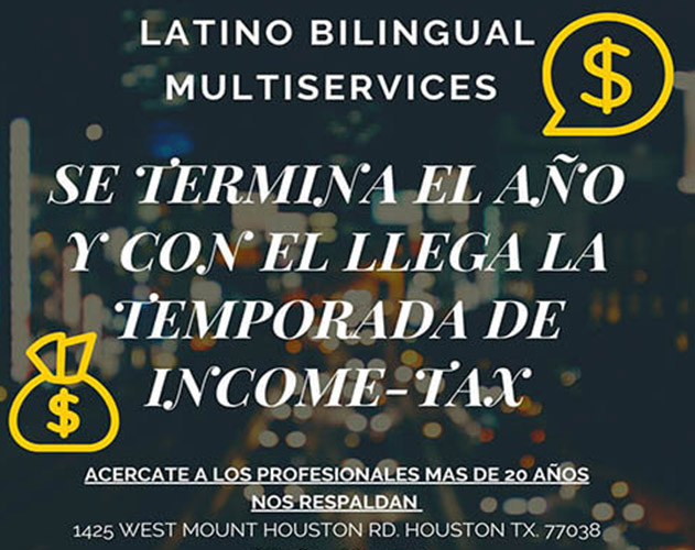 Somos una Compañía con mas de 20 Años de Experiencia sirviendo a nuestra comunidad, Si estás buscando una empresa que se centre en tus necesidades y que siempre te trate como un cliente importante, no busques más. Latino Bilingual Multiservices Taxes & Inmigation Center es lo suficientemente grande como para ofrecer una gama de servicios completos y lo suficientemente pequeña como para brindarte la atención personalizada que mereces.